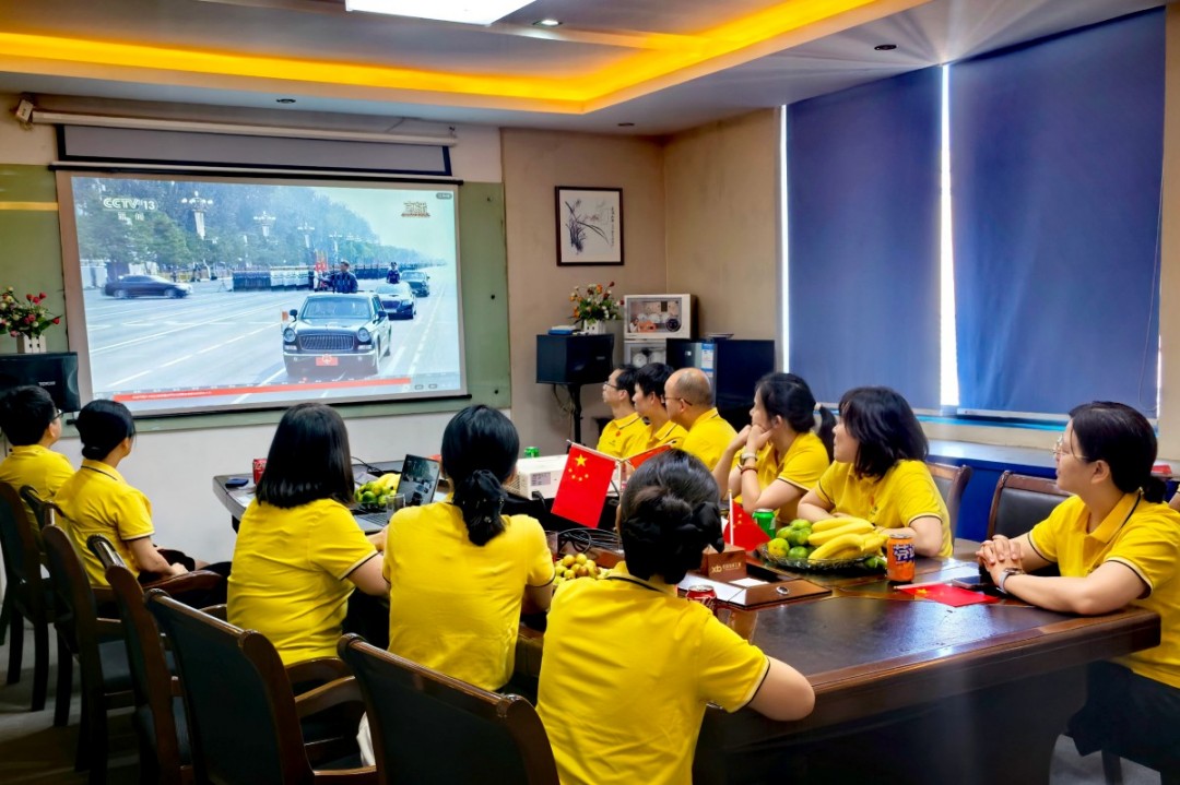 2025年9月3日,品享科技積極組織全體員工齊聚會議室觀看了在北京天安門廣場隆重舉行的紀念中國人民抗日戰爭暨世界反法西斯戰爭勝利80周年大會 。